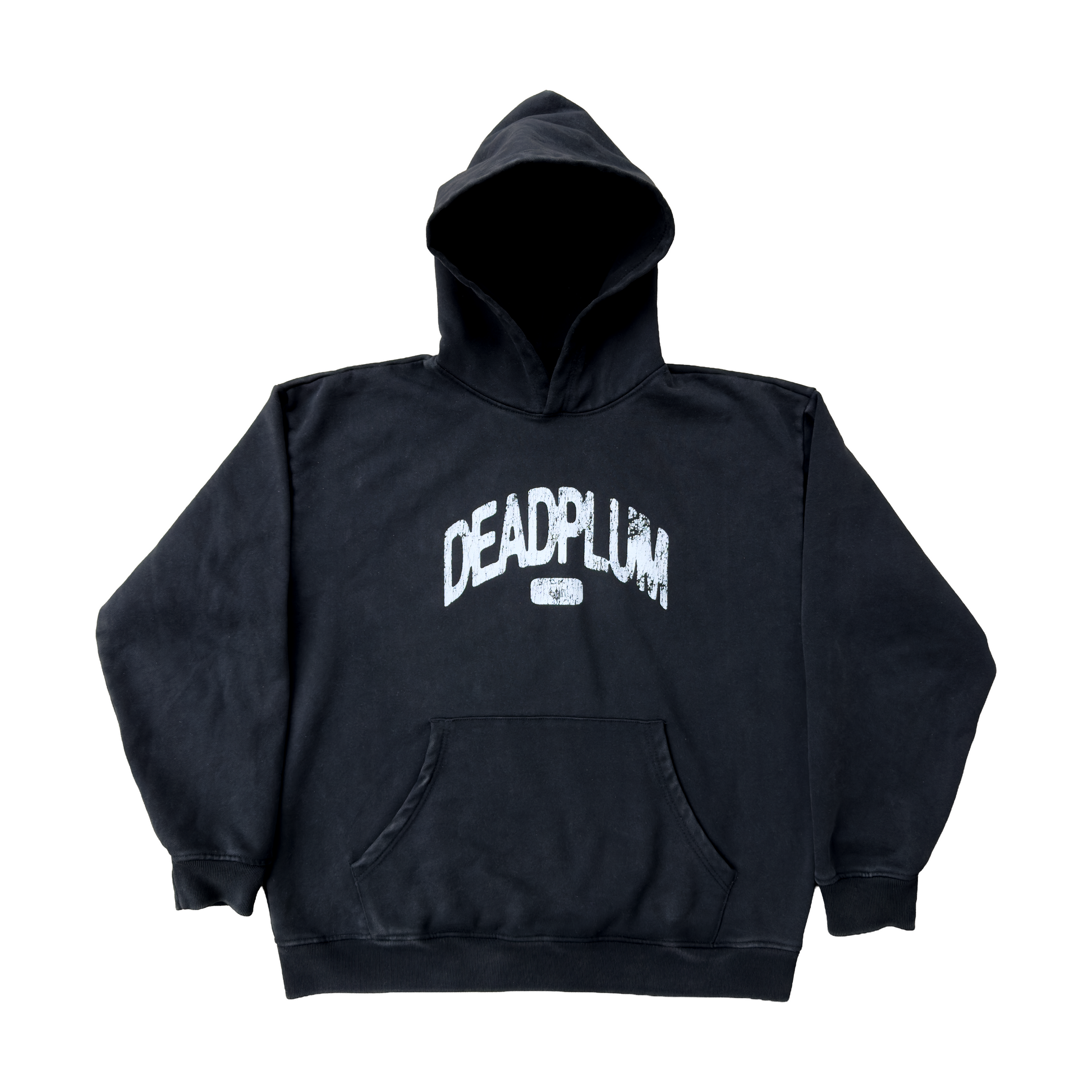 005: Deadplum Reset Hoodie is a hoodie made of 14oz brushed fleece cotton with an oversized drop shoulder. It features a vintage wash for a worn and faded look. It also features a graphic printed on the front.